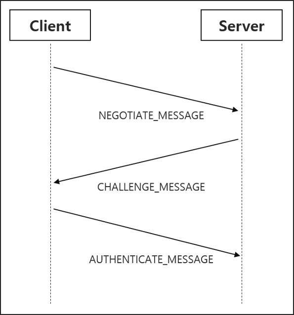 각 단계에서 보이는 NEGOTIATE_MESSAGE, CHALLENGE_MESSAGE, AUTHENTICATE_MESSAGE 는 NTLM 인증에서 사용하는 메시지 구조체이다.