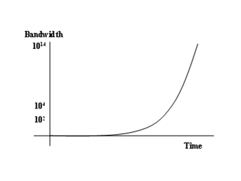 - 광섬유의 대역폭은 12개월마다 3배씩 증가한다. (대역폭 : 1초동안 전송 가능한 데이터의 양)