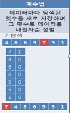 - 계수법 (Frequency Count): 데이터마다 탐색된 횟수를 새로 저장하며, 그 횟수를 내림차순 정렬