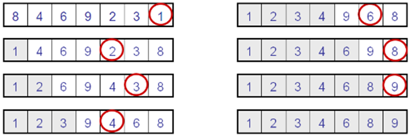 정렬이 안된 숫자들 중에서 최소 값을 선택하여 배열의 첫 번째 요소와 교환하는 정렬 기법