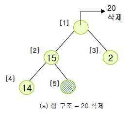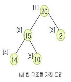 트리 중에서 부모 노드의 원소 값이 자식 노드의 원소 값보다 큰 완전 이진 트리인 힙(Heap)을 만들기 위한 정렬 방법