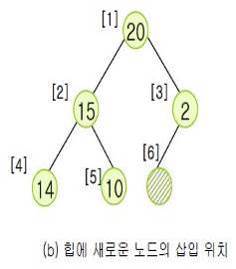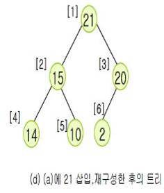 void insert_max_heap(element item, int *n) { int i; if(HEAP_FULL(*n)) { fprintf(stderr,”The heap is full. ₩n”); exit(1); } i = ++(*n); while((i!=1)&&(item.key>heap[i/2].key)) { heap[i] = heap[i/2]; i /= 2; } heap[i] = item; } |