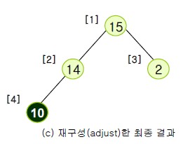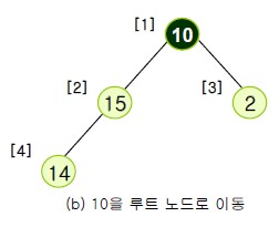 - 트리 중에서 부모 노드의 원소 값이 자식 노드의 원소 값보다 큰 완전 이진 트리인 힙(Heap)을 만들기 위한 정렬 방법