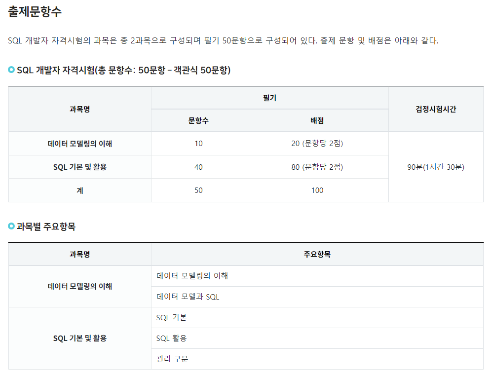한국데이터산업진흥원(KDATA)에서 주관하는 국가공인자격시험으로, SQLD/SQLP 2종류로 나뉩니다.