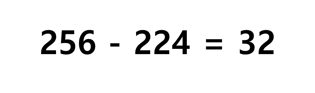 256-224 = 32입니다. 즉, 네트워크는 32배로 증가합니다.