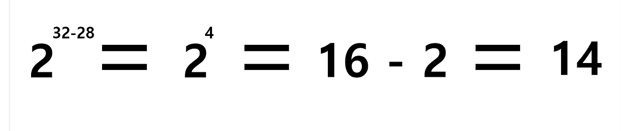 즉 28-24 = 4 2의 4승이며 이는 16입니다. 따라서 16개의 네트워크를 가집니다.