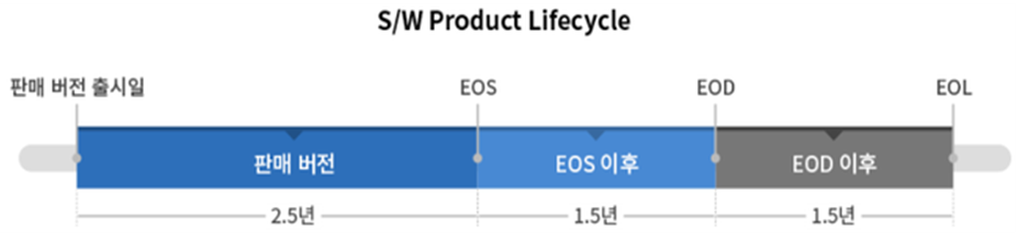 제조사에서 공식적으로 SW 생산 및 판매 중단하는 것이며, EOS가 되더라도 업데이트, 버그 패치, 기술 지원등의 유지보수는 지속됩니다.