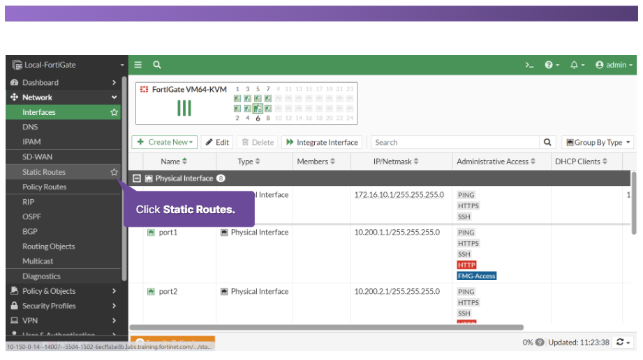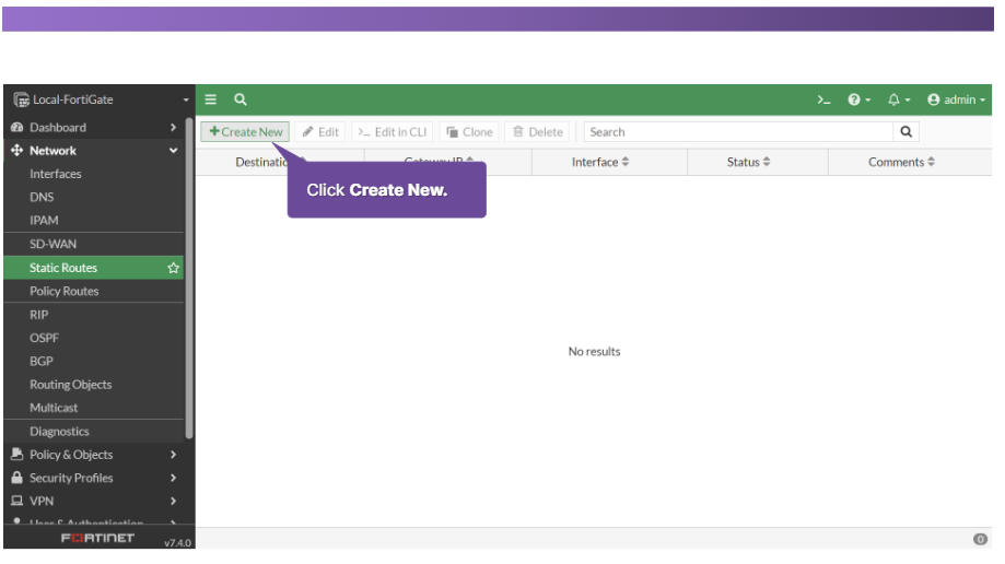 생성하는 모든 고정 경로는 FortiGate 구성의 일부가 되며 GUI의 네트워크 > 고정 경로 에서 이를 확인할 수 있습니다 . 생성한 이러한 고정 경로는 삭제할 때까 지 구성에 유지됩니다.