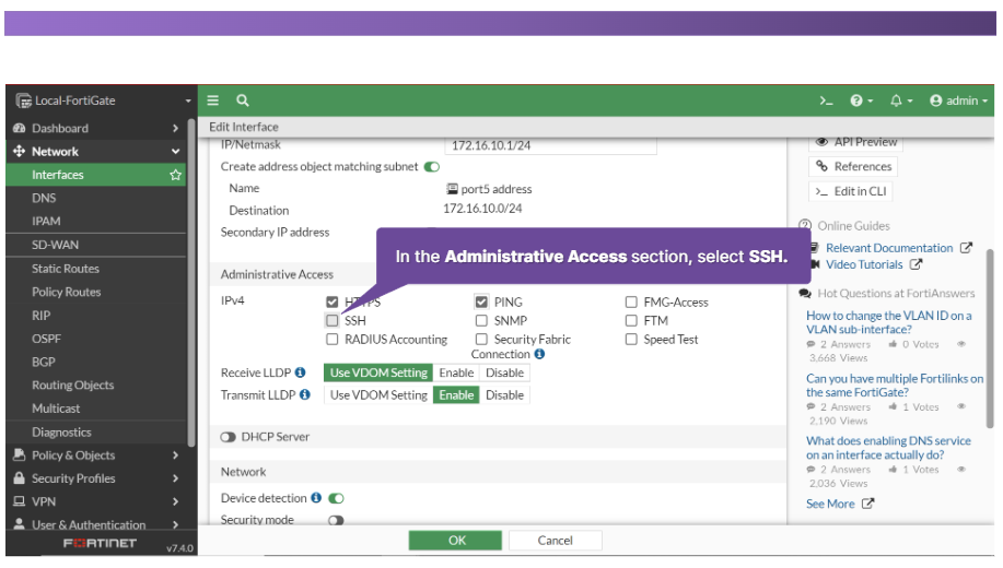 - 관리 액세스(Administrative access) : HTTPS, PING, SSH등 관리 목적으로 인터페이스에 연결하는데 사용할 수 있는 프로토콜입니다.