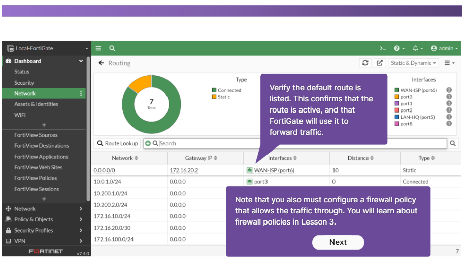 [FCA] FortiGate 7.4 Operator Lesson 03: Firewall Policies - 방화벽 정책 구성 및 검증